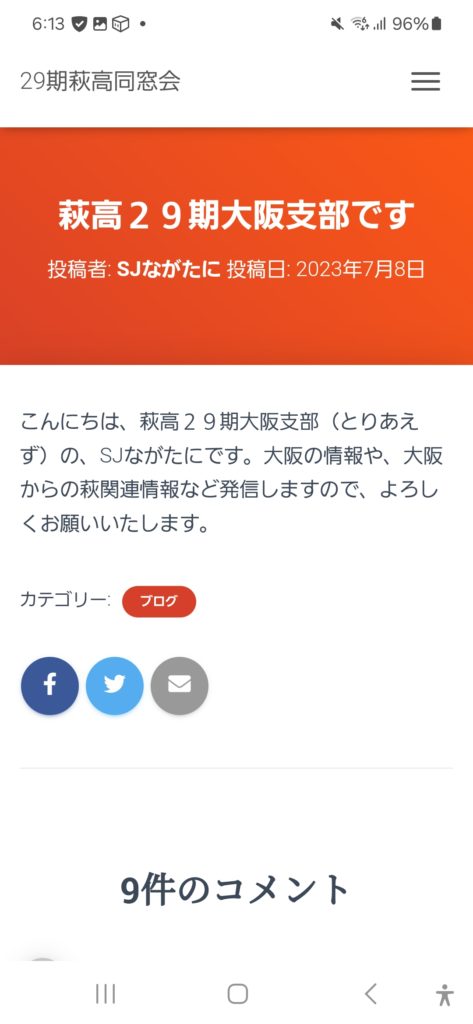 2023年7月8日の大阪支部・発足・初回のブログ投稿画像です